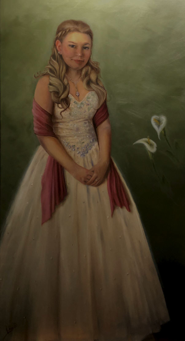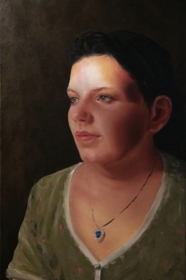 ![]() Kvinne sittende på seng 100x100cm 9200.- |