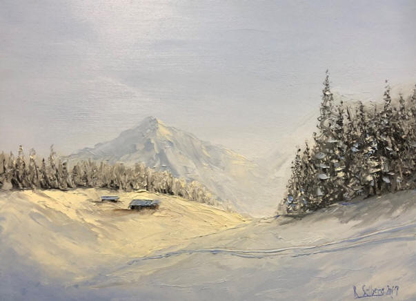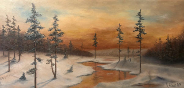 Vinterlandskap malt med kniv 30x40cm 1500.- |